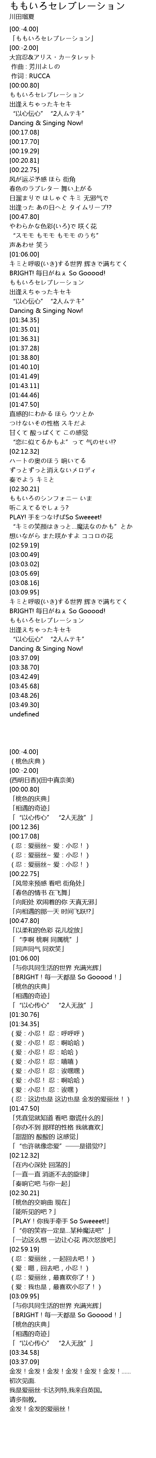 | [00:-3.00] | 「ももいろセレブレーション」 |