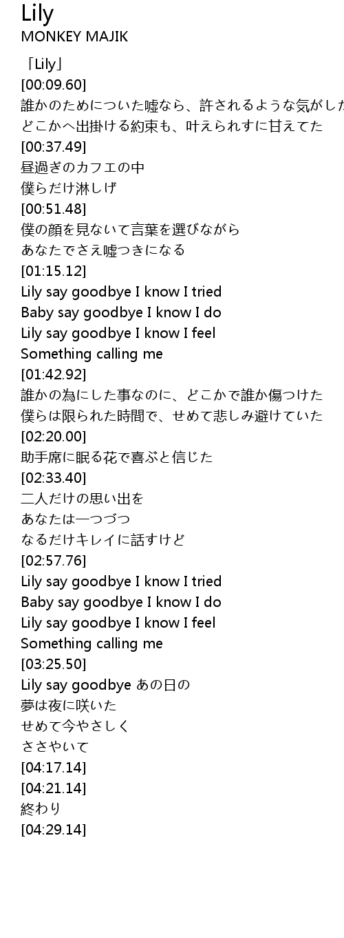 | [02:58.46] | Lily say goodbye I know I tried |