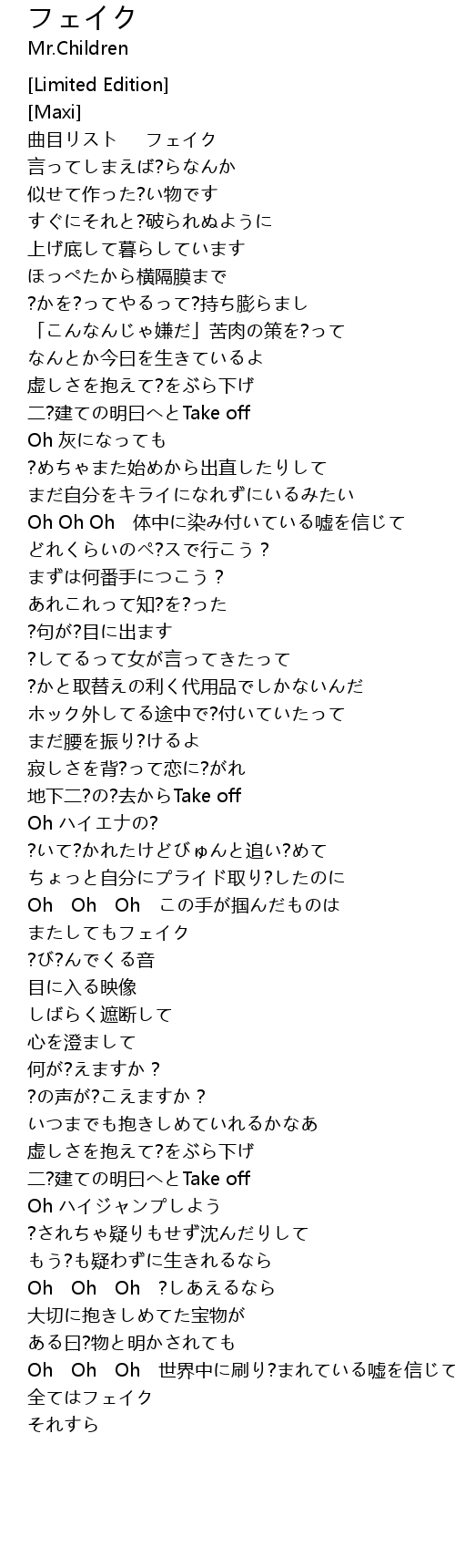 | [00:05.28] | 曲目リスト フェイク |