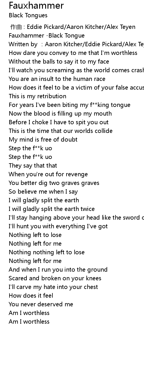 | [00:00.175] | Fauxhammer -Black Tongue |