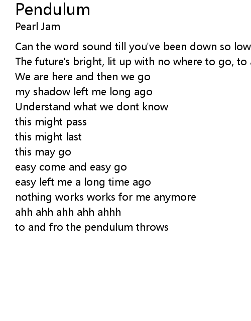 | The future's bright, lit up with no where to go, to and fro the pendulum throws | |