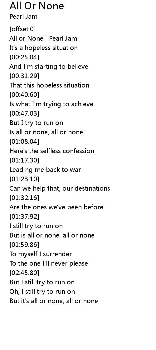 | [00:02.90] | All or None Pearl Jam |