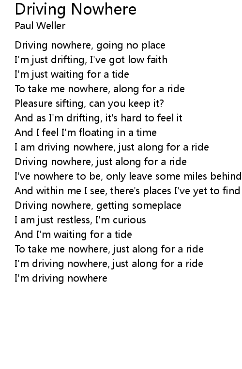 I'm driving nowhere, just along for a ride |