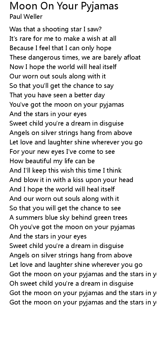 Got the moon on your pyjamas and the stars in your eyes |