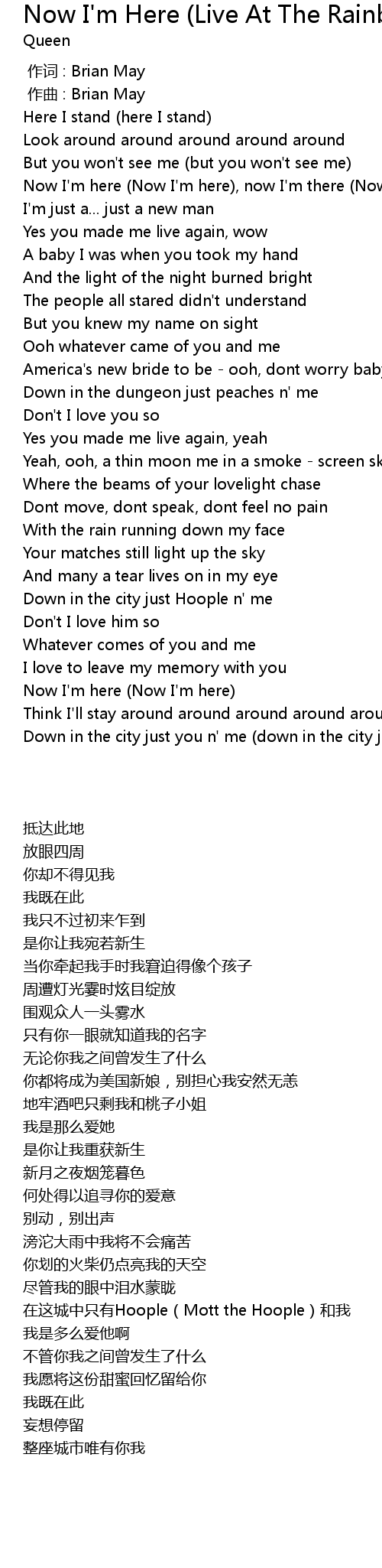 | [00:00.000] | zuo ci : Brian May |