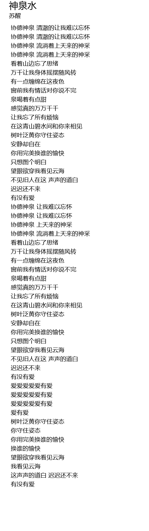 | [02:22.64] | 协德神泉 让我难以忘怀 |