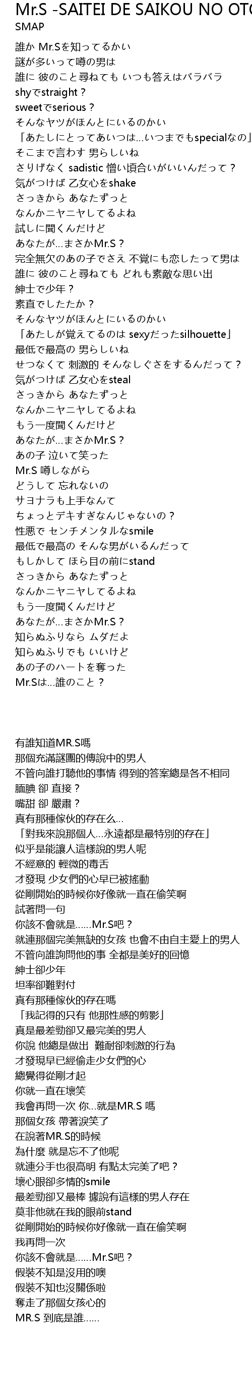 | [02:45.92] | Mr.S 噂しながら |