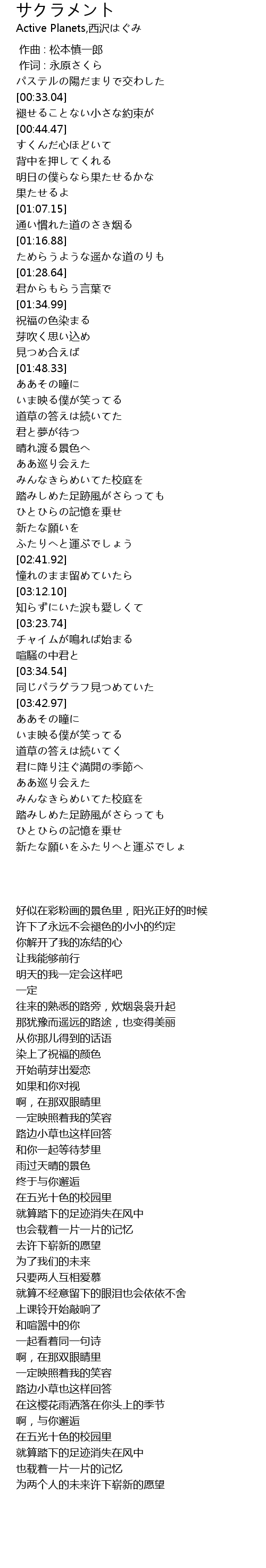 | Song | サクラメント |