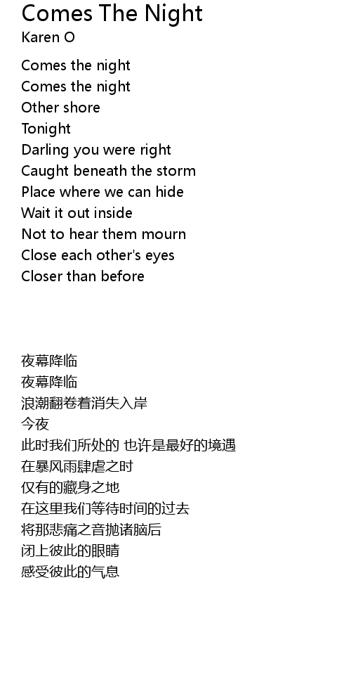 | [00:13.09] | Comes the night |