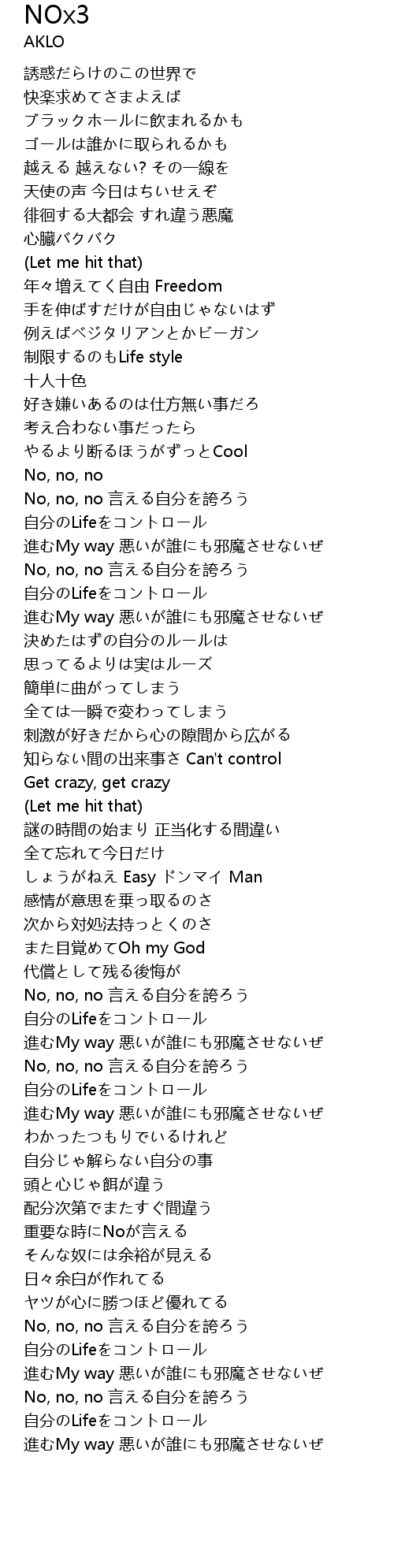| [01:41.540] | No, no, no 言える自分を誇ろう |