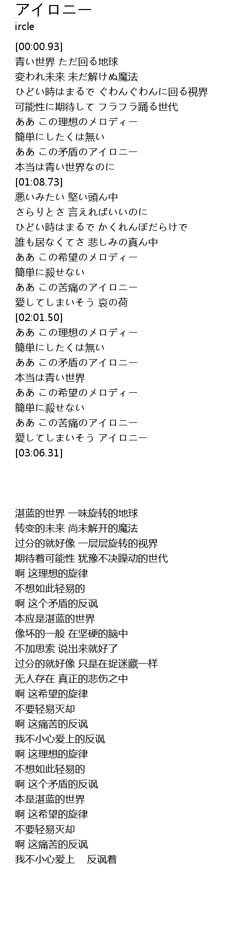 | [00:59.37] | ああ この矛盾のアイロニー |