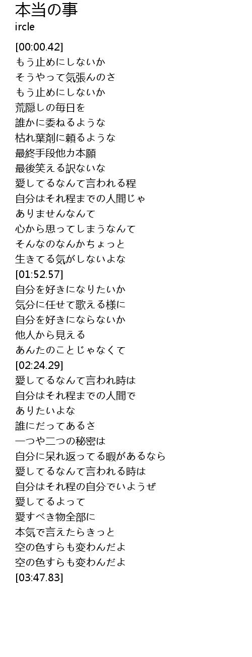 | [03:24.06] | 自分はそれ程の自分でいようぜ |
