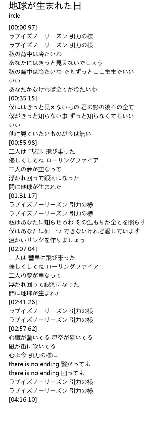 | [04:01.07] | ラブイズノーリーズン 引力の様 |