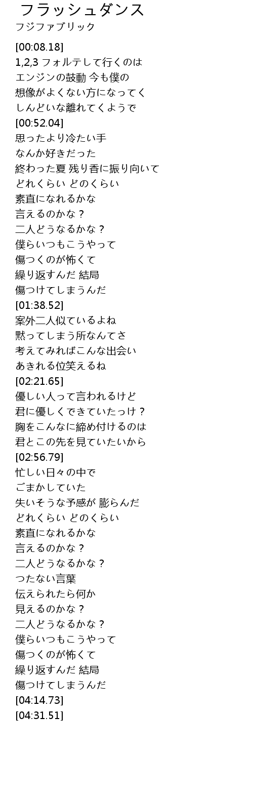 | [03:21.15] | 失いそうな予感が 膨らんだ |