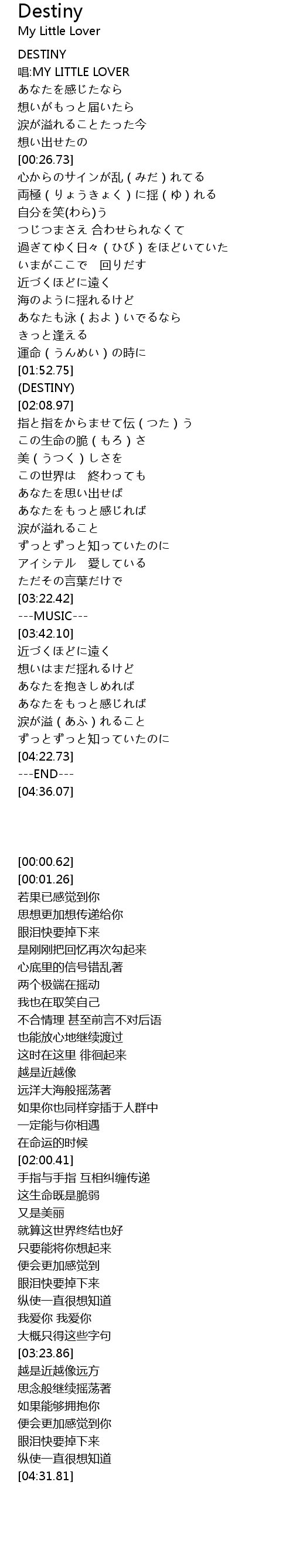 唱:MY LITTLE LOVER |