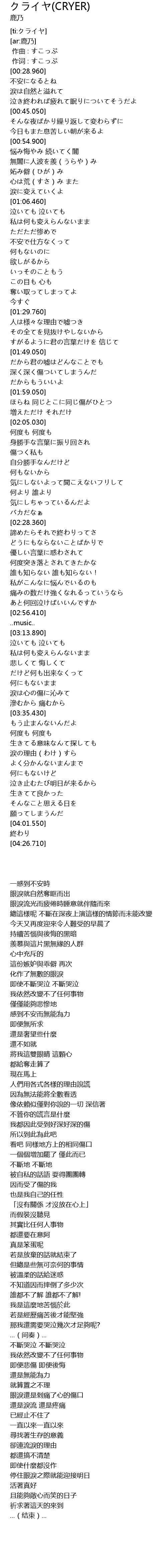| [ti:クライヤ] | |