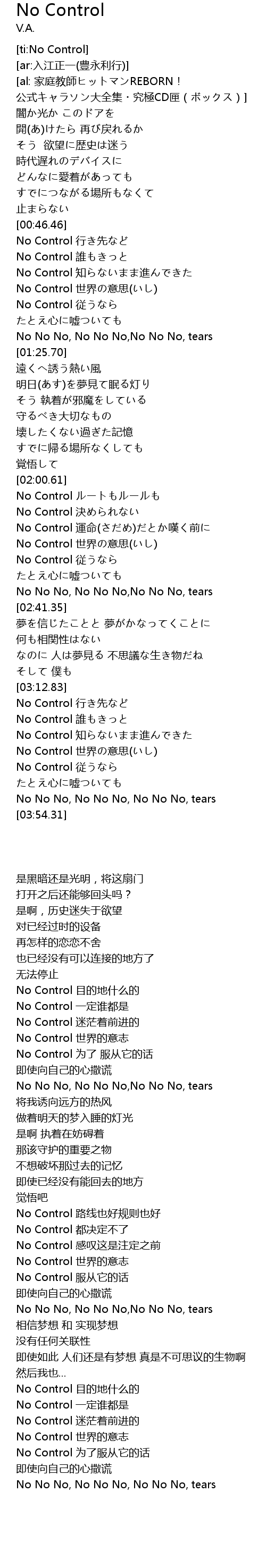 | [02:08.00] | No Control 運命(さだめ)だとか嘆く前に |