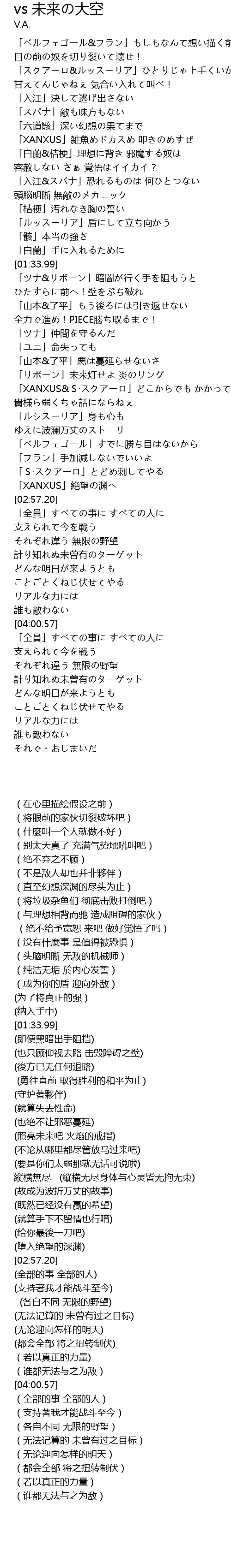 | [04:18.61] | 計り知れぬ未曽有のターゲット |