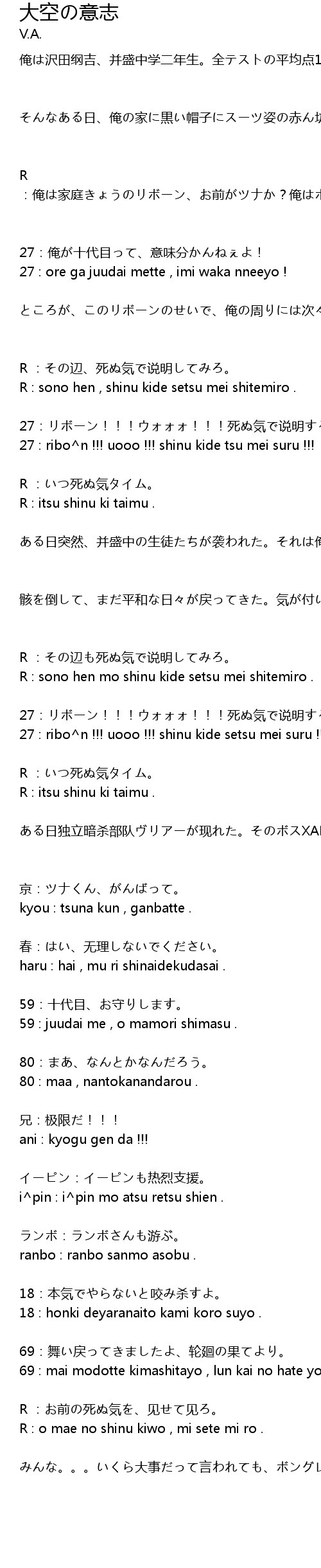 | 27 : ribo^n !!! uooo !!! shinu kide tsu mei suru !!! | |