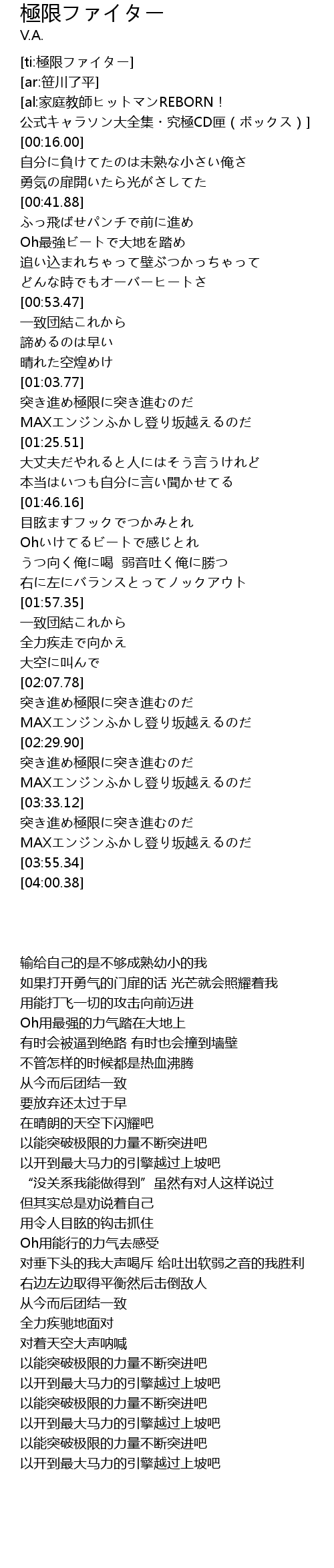 | [03:12.19] | 突き進め極限に突き進むのだ |