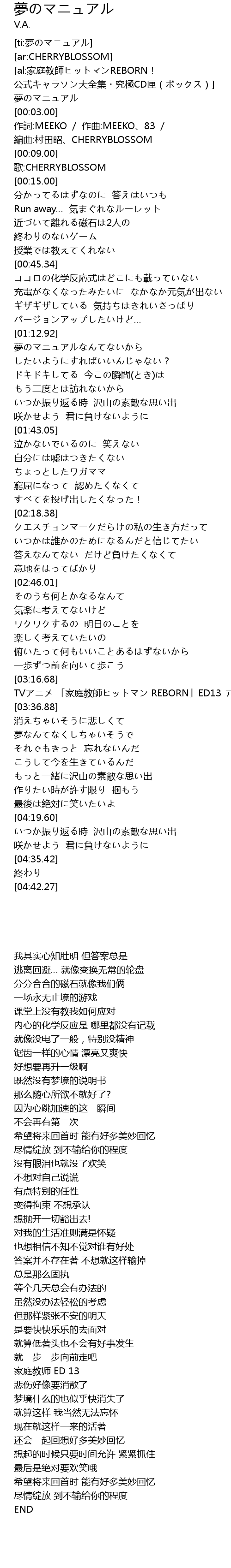 | [03:20.68] | TV jia ting jiao shi REBORN ED13 |