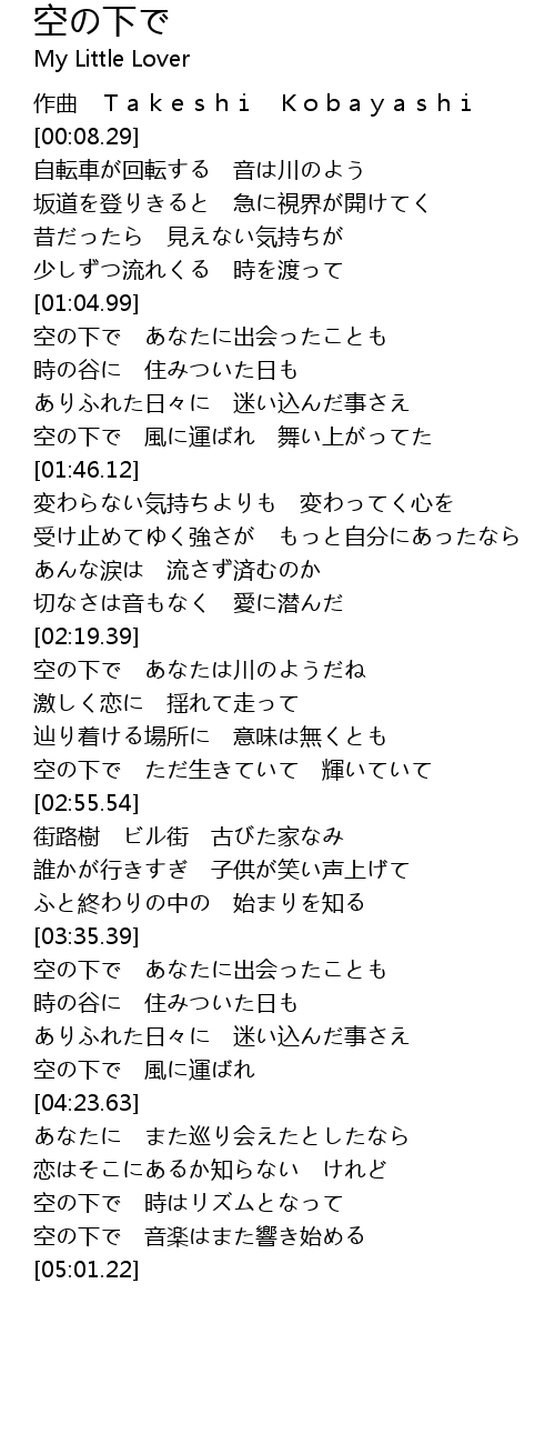 | [02:19.72] | 空の下で あなたは川のようだね |