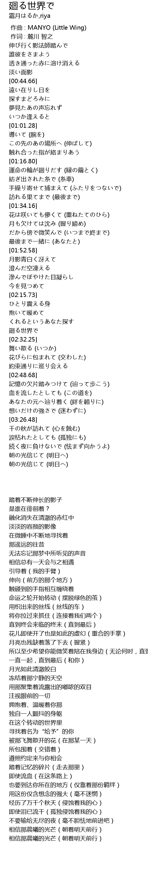 | [02:28.93] | 廻る世界で |