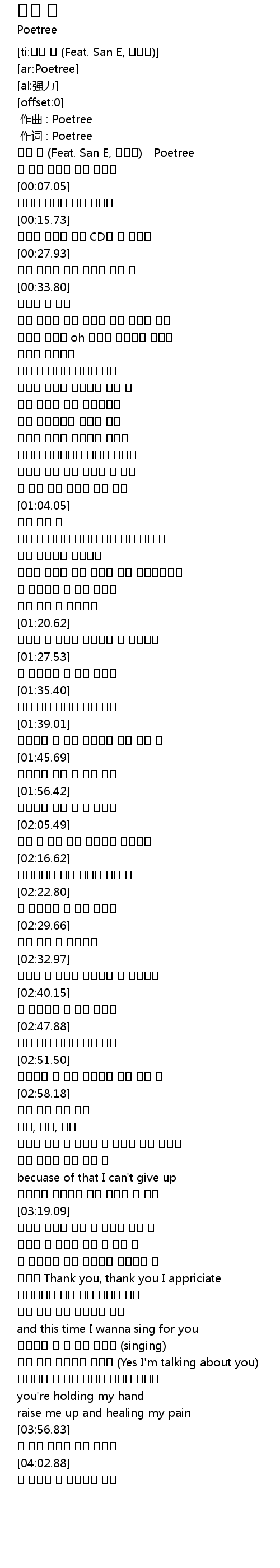 | [00:00.91] | 힘이 돼 (Feat. San E, 박지혜) - Poetree |