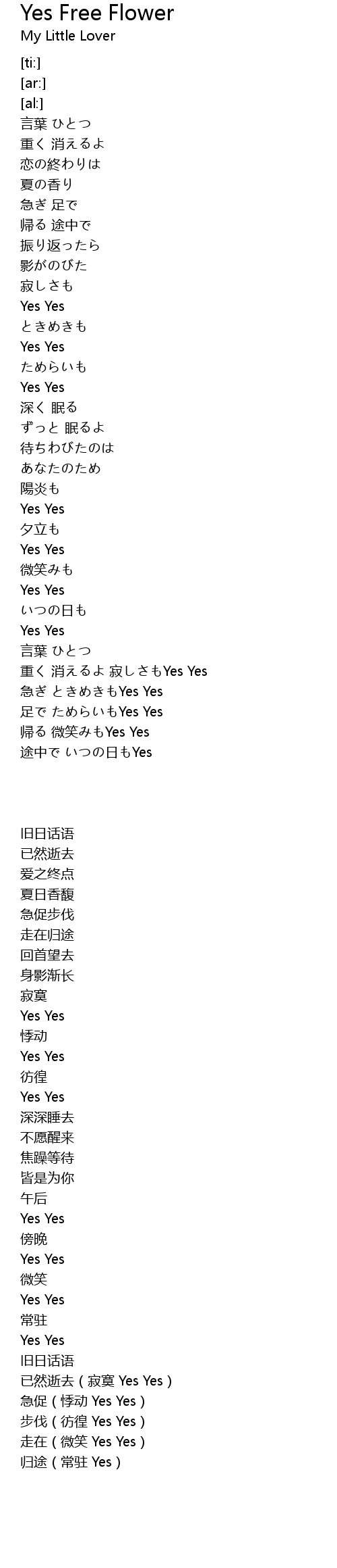 重く 消えるよ 寂しさもYes Yes |