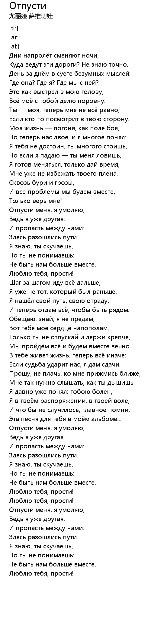 Отпусти меня, я умоляю, |