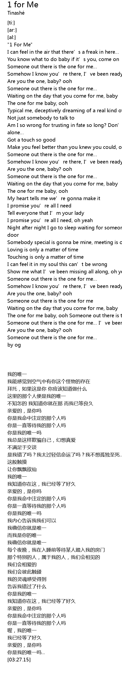 | [00:00.49] | "1 For Me" |