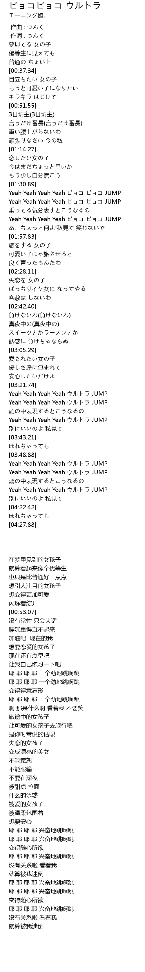 | [04:02.34] | Yeah Yeah Yeah Yeah ウルトラ JUMP |