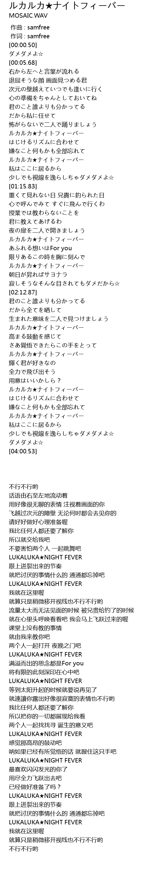 | [01:58.70] | ルカルカ★ナイトフィーバー |