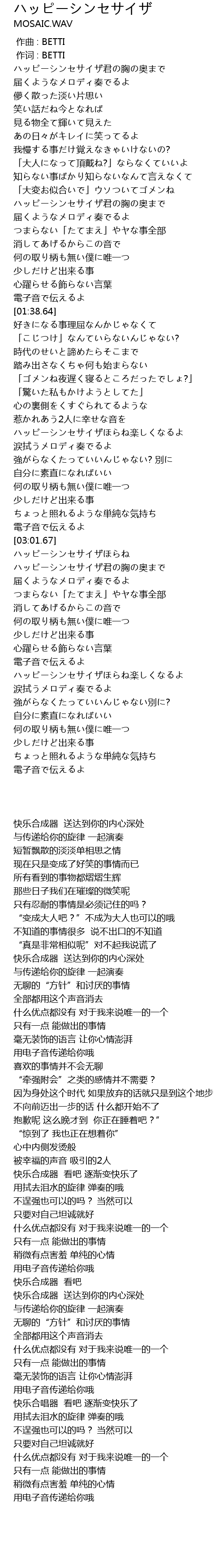 | [00:00.00] | 作曲 : BETTI |