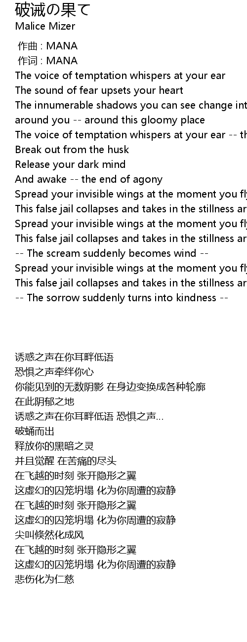 | [02:34.782] | Spread your invisible wings at the moment you fly away |