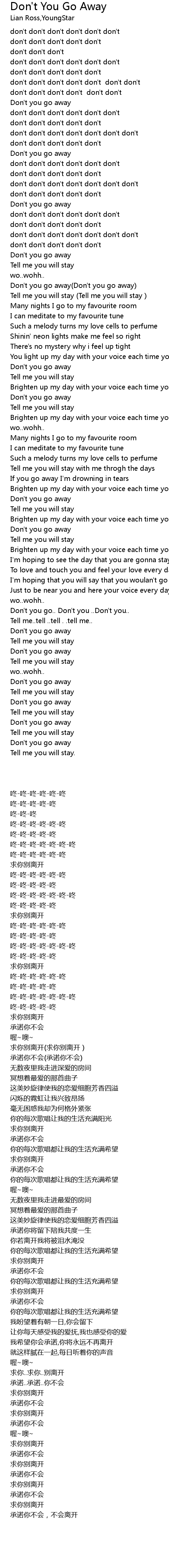 | [01:08.73] | Don't you go away(Don't you go away) |