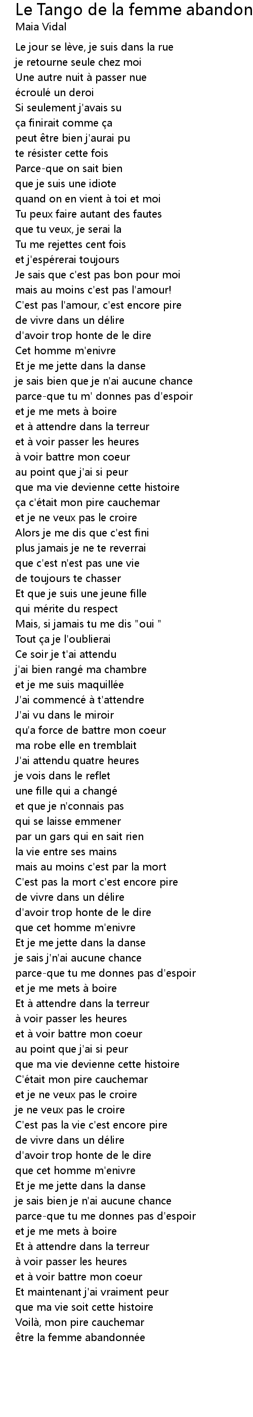 | [00:28.90] | Le jour se le ve, je suis dans la rue |