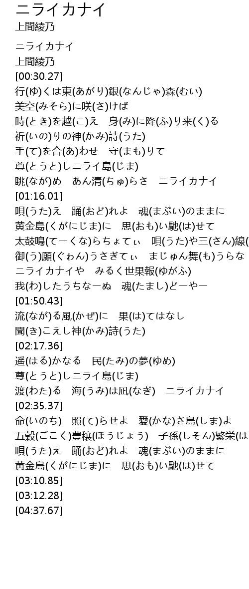 | [02:21.69] | 尊(とうと)しニライ島(じま) |