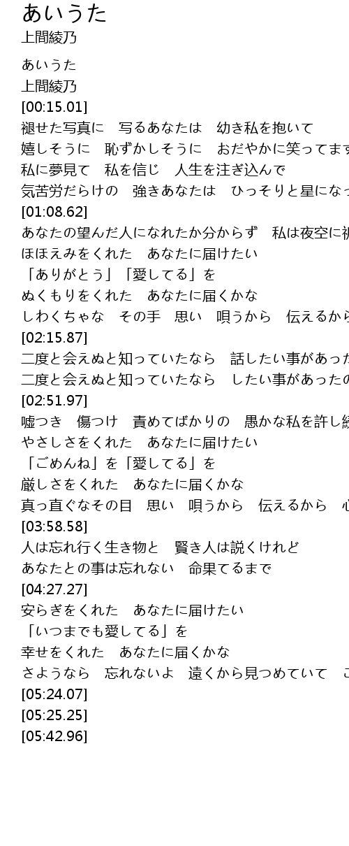 | [01:38.71] | 「ありがとう」「愛してる」を |
