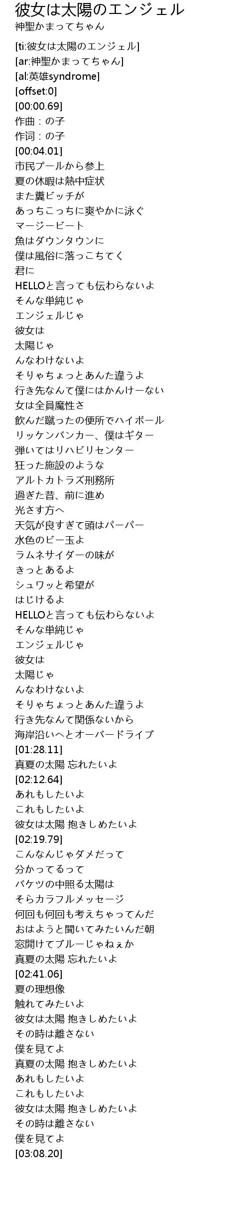 | [02:46.46] | 彼女は太陽 抱きしめたいよ |