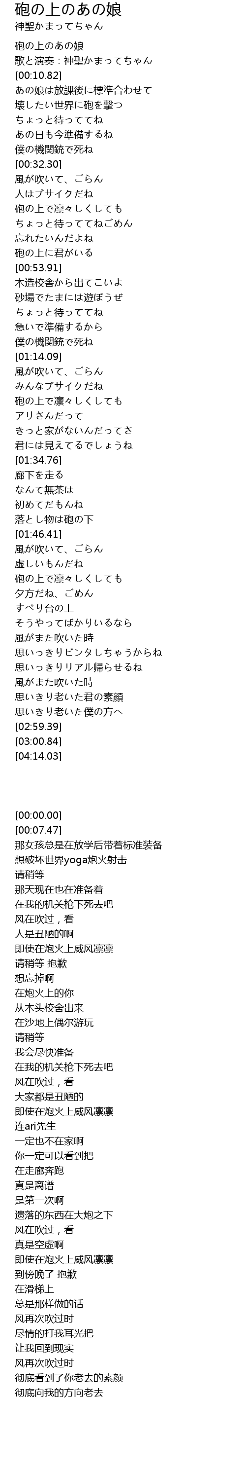 | [00:59.34] | 砂場でたまには遊ぼうぜ |