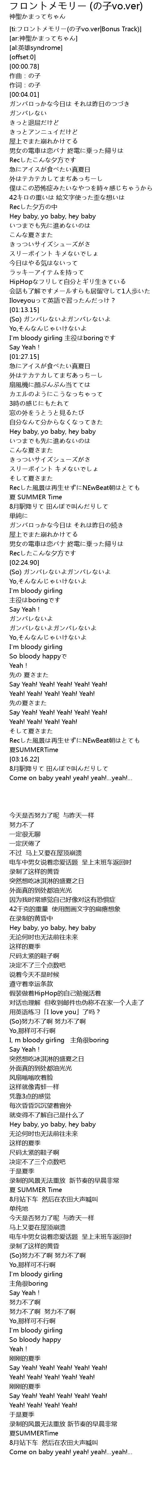 | [ti:フロントメモリー(の子vo.ver|Bonus Track)] | |