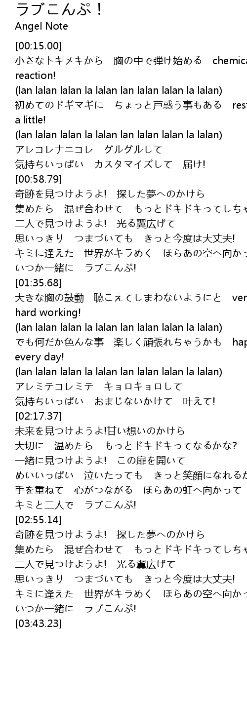 | [03:37.08] | いつか一緒に ラブこんぷ! |