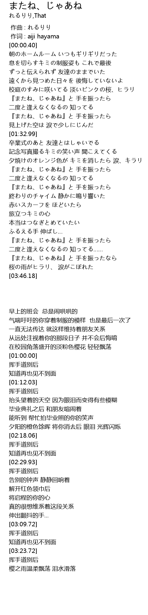 | [01:12.03] | 『またね、じゃあね』と 手を振ったら |
