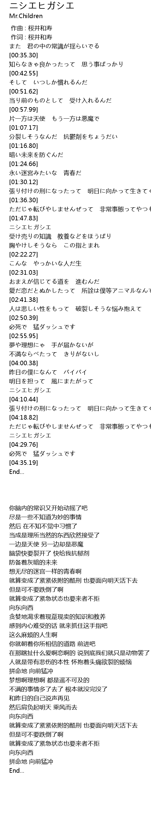 | [04:27.57] | ニシエヒガシエ |