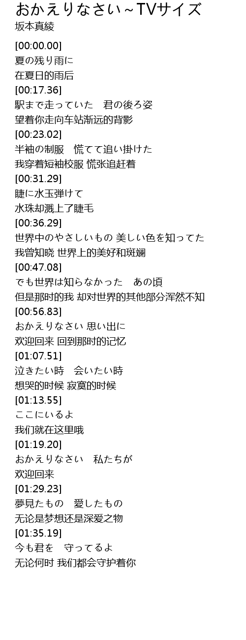 | [00:57.00] | おかえりなさい 思い出に |
