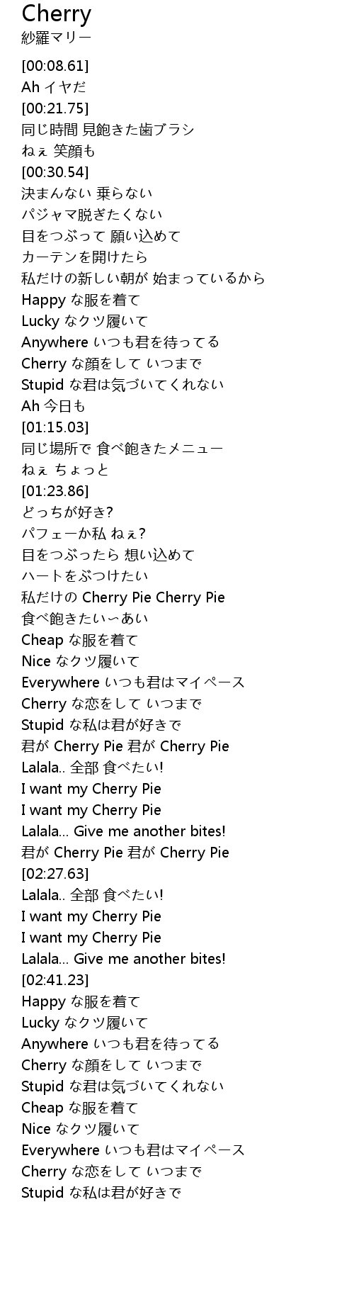 | [01:39.00] | 私だけの Cherry Pie Cherry Pie |