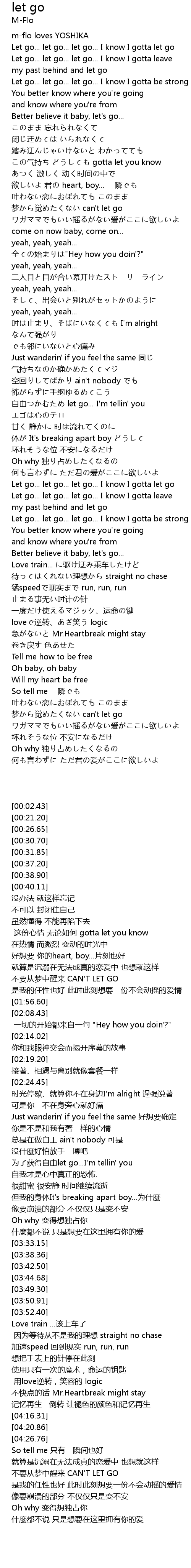 | [03:38.36] | Let go... let go... let go... I know I gotta leave |