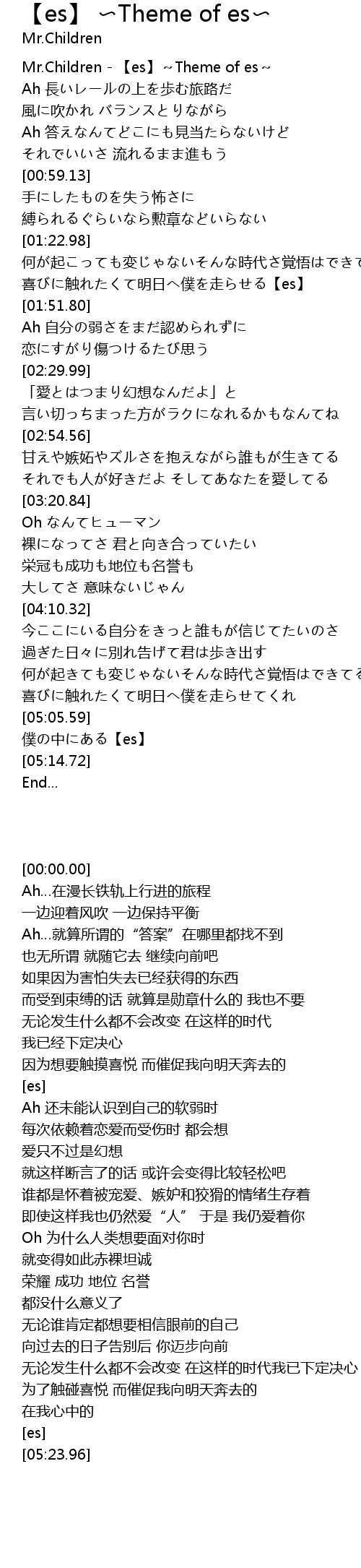 | [00:00.00] | Mr.Children - 【es】~Theme of es~ |