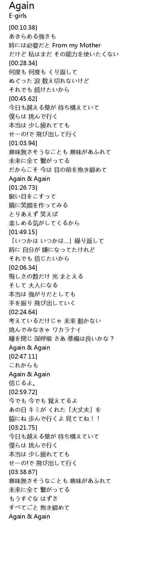 | [00:33.56] | ぬぐった 涙 数え切れないけど |